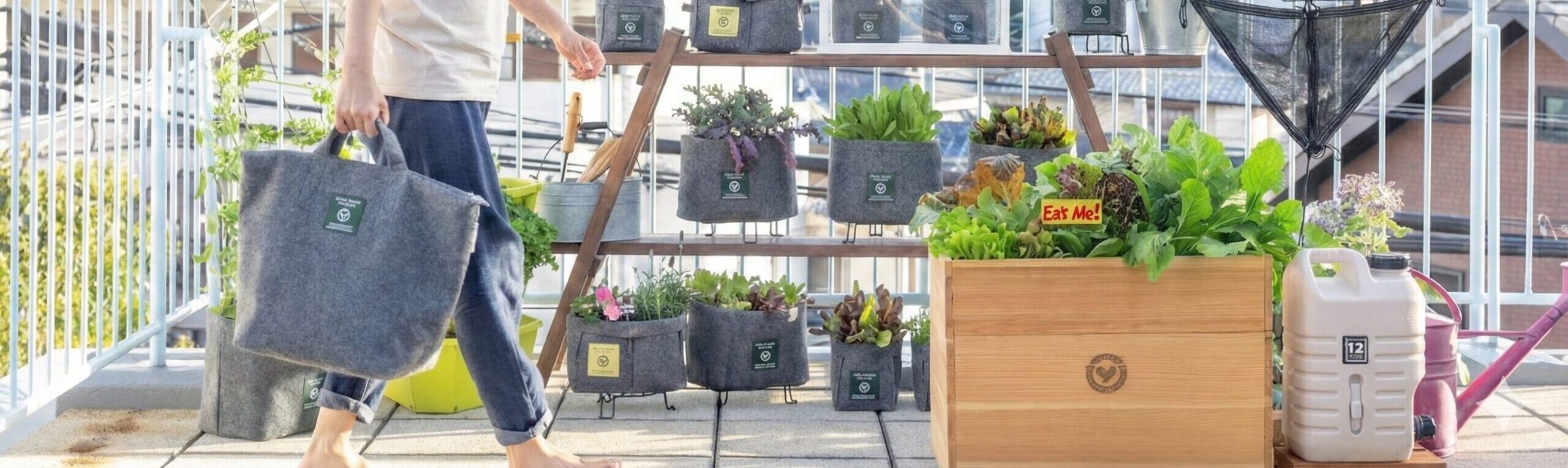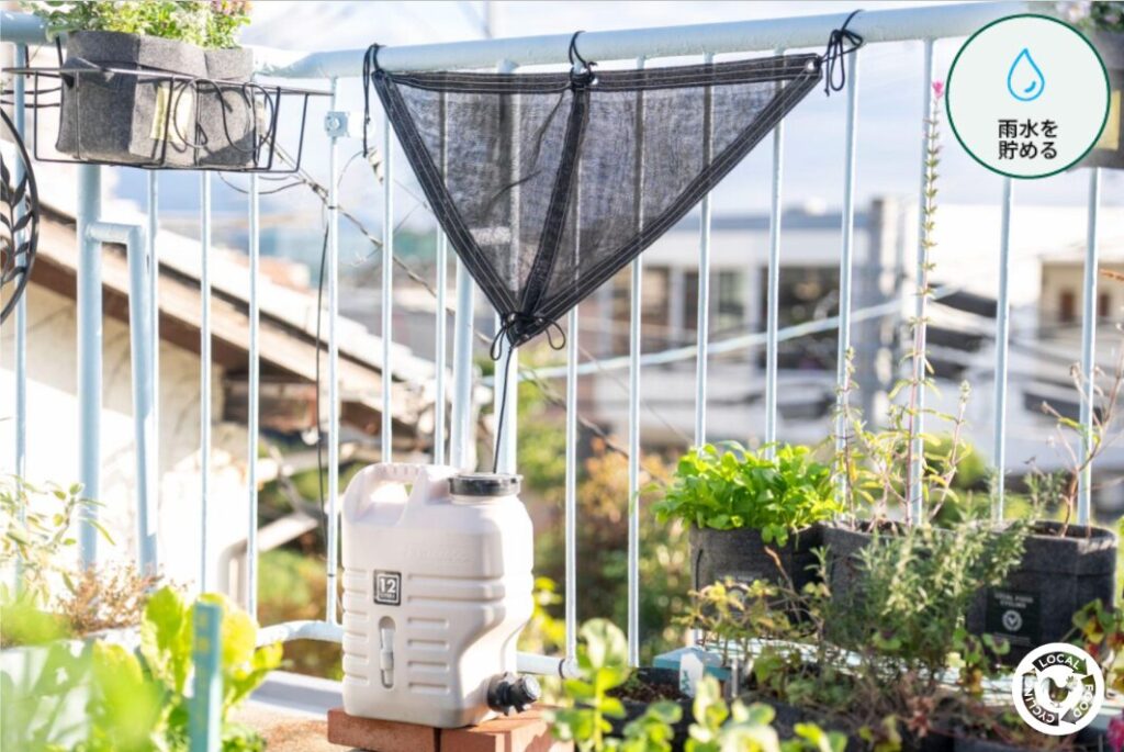 都会のベランダでもできる、小さなスペースを活用したキットのご提案です。雨水を集め、生ごみ堆肥と雨水を使ってレイズドベッドで野菜を育てる。都会のベランダで循環生活が始まります。
