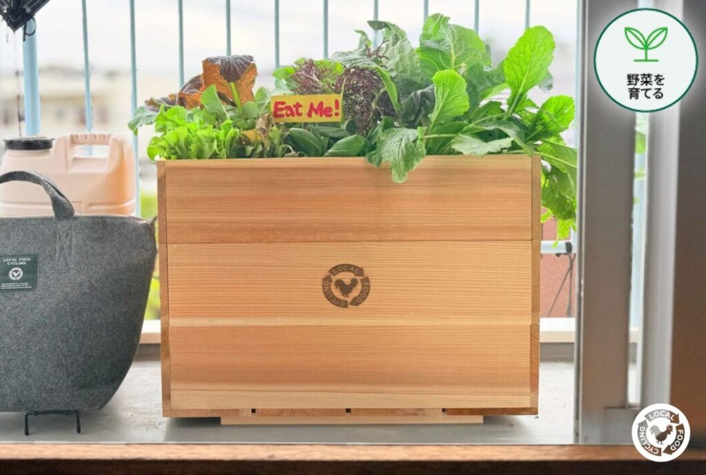 雨、生ごみ、枝や落ち葉などの地域資源をつかったプランター。ちいさな自給くらしキットでベランダで手軽に循環を楽しめます。都会の忙しい日々の中でも、季節の変化や小さな恵みを感じてみませんか。