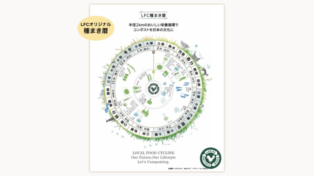 LFCレイズドベッドご注文の方に、LFCカルチャーデザイン部作成のオリジナル種まき暦をプレゼントしています。食循環を楽しみましょう。