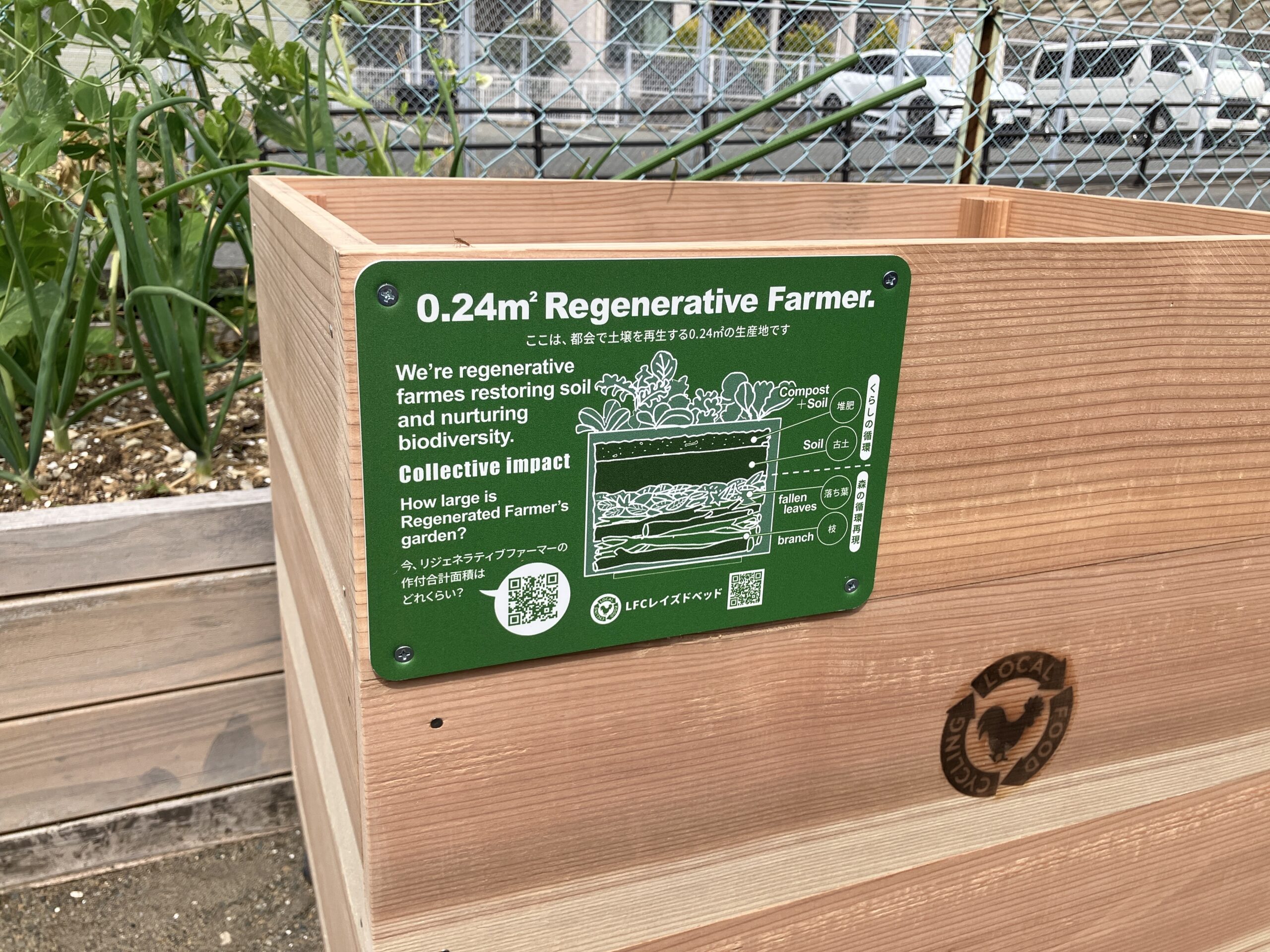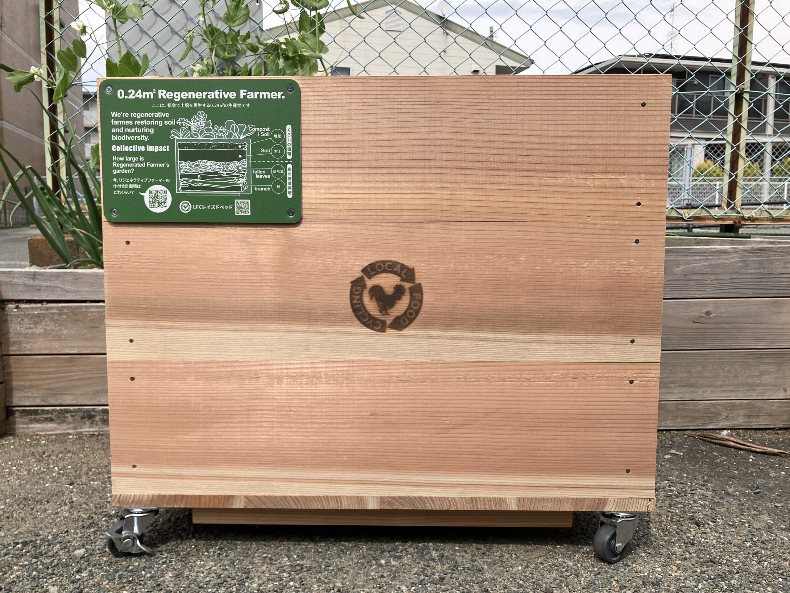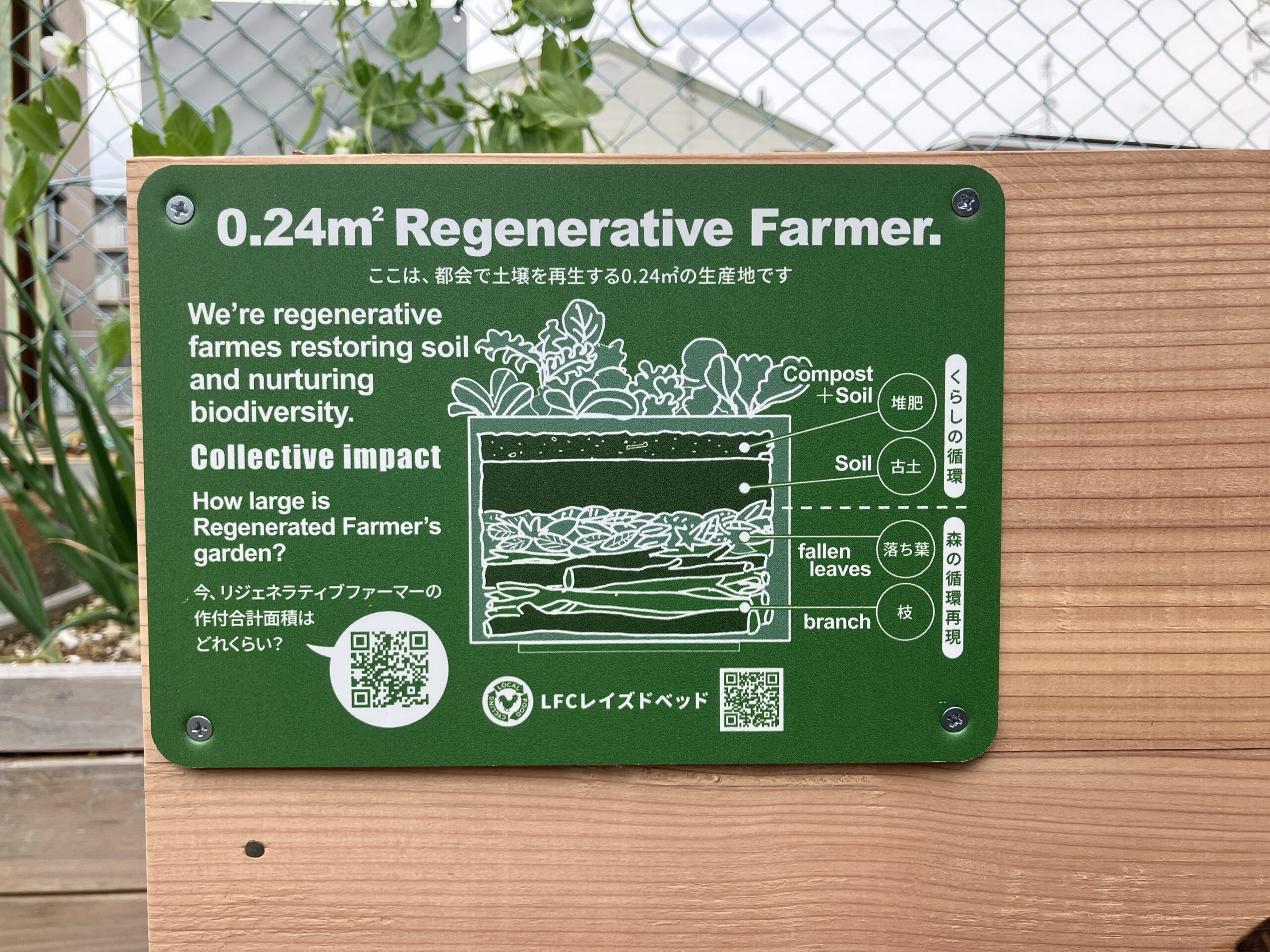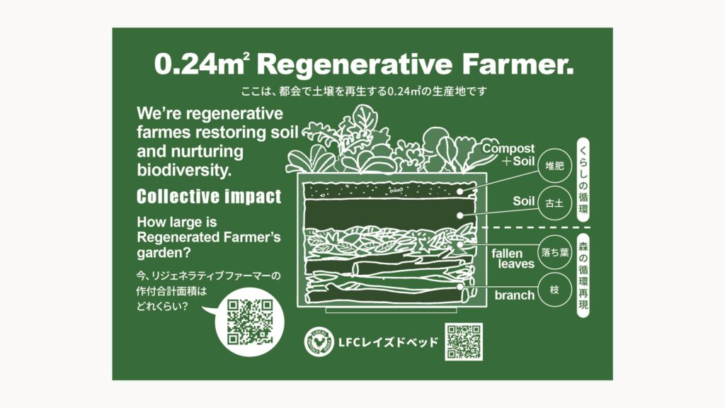 0.24㎡リジェネラレティブファーマーズプレートは、あなたのベランダが「循環の拠点」へと変わったことを示す証です。LFCレイズドベッドに取り付けることで、ちいさな自給くらしの取り組みをより身近に、より深く楽しむことができます。